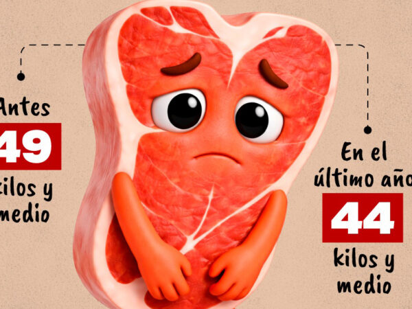 Desde el último año, comemos cinco kilos menos de carne de vaca: pasamos de consumir 49 kilos y medio a 44 kilos y medio por año por persona. Por otro lado, consumimos un kilo y medio más de carne de cerdo, ahora comemos 19 kilos y 300 gramos.