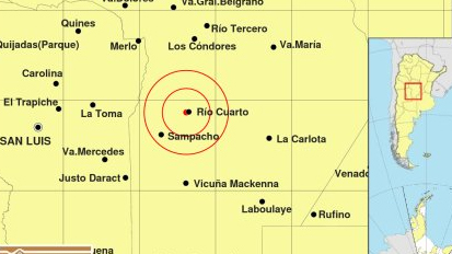 El movimiento telúrico se registró a las 2.50 de este lunes a una profundidad de 10 kilómetros sobre la ciudad de Río Cuarto.